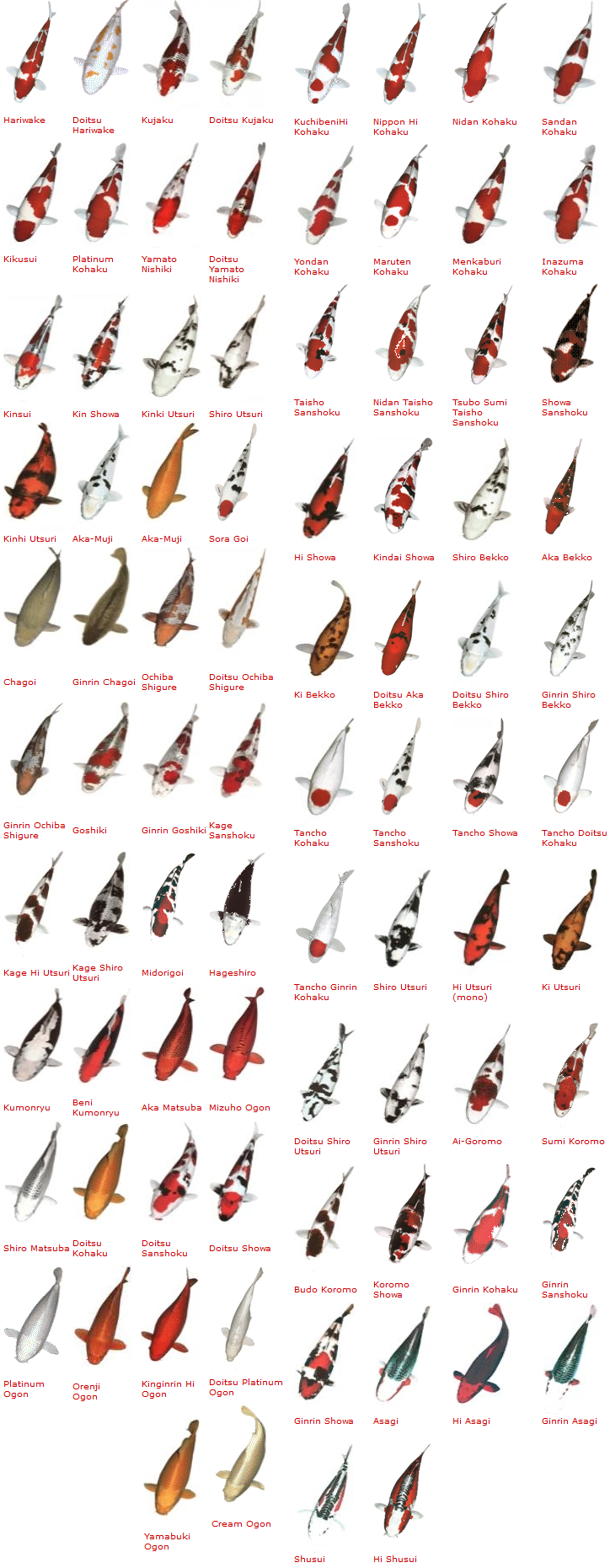 Eine Auswahl von Koivarietäten mit Namen und Bild ohne Anspruch auf Vollständigkeit